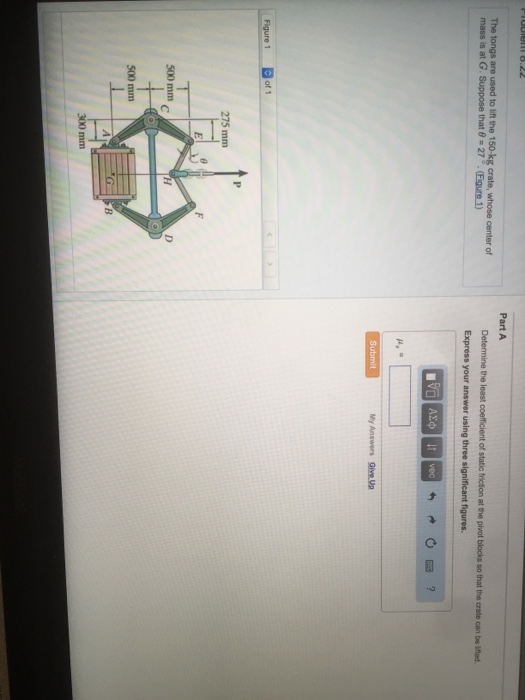 Solved Q3 The tongs are used to lift the 150−kg crate, whose The Tongs Are Used To Lift The 150 Kg Crate let's assume that the tongs are able to exert a maximum force of f on the crate. Determine the least coefficient of static friction at the pivot blocks so that. the tongs are used to lift the 150−kg crate, whose center of mass is at part a g. Suppose that theta = 35. Suppose that θ = 33. The Tongs Are Used To Lift The 150 Kg Crate.